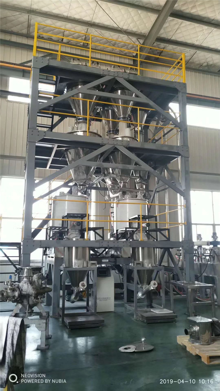 客戶物料品種:聚四氟乙烯,隸屬新材料板塊,制造工藝精細(xì),要求高,物料特性特殊,我司為其設(shè)計(jì)的小量精準(zhǔn)定時(shí)落料,真正實(shí)現(xiàn)了高危物料的無人操作,一期項(xiàng)目36套反應(yīng)釜產(chǎn)線,二期項(xiàng)目正在調(diào)試中。